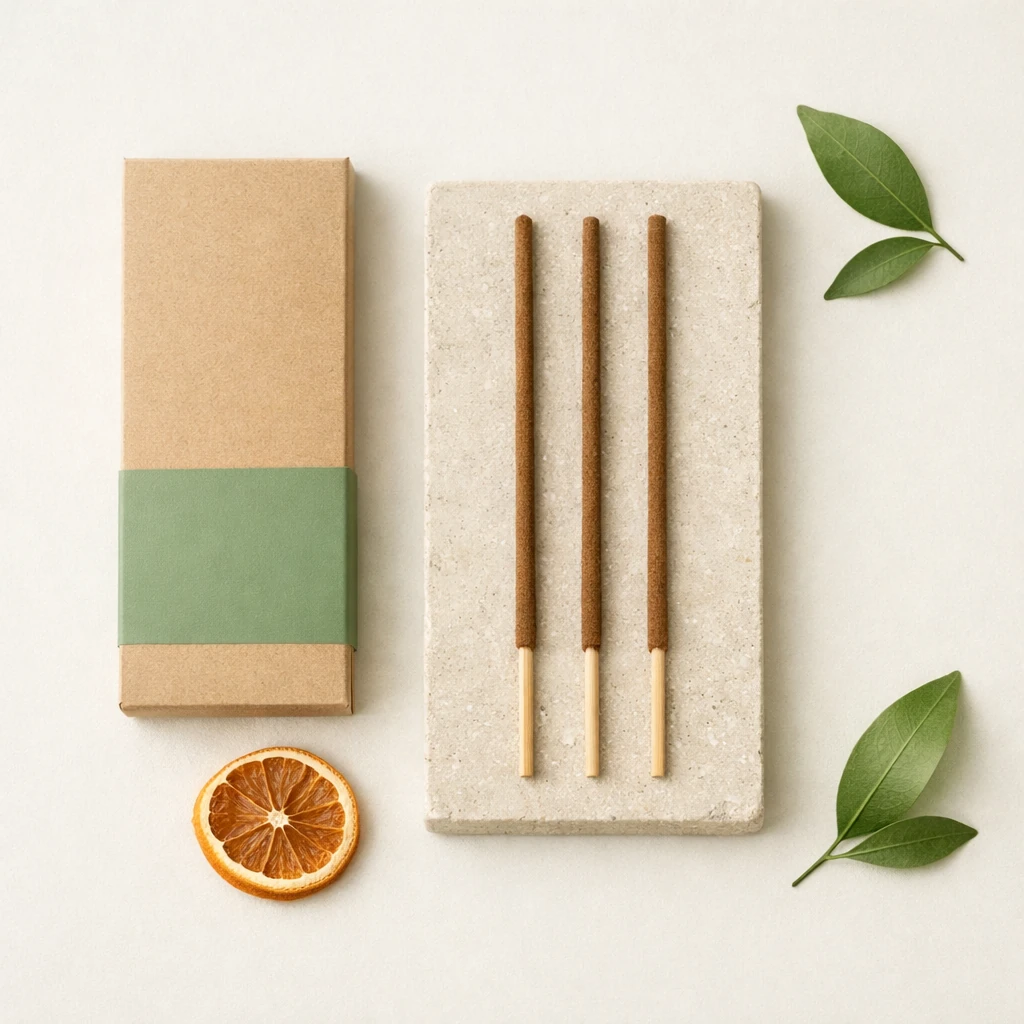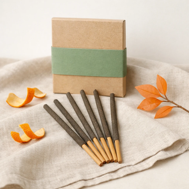 در عودهای «پرتقالی» معمولاً دو مسیر وجود دارد: رایحهی اسانسی (پررنگ، تیز و شبیه خوشبوکنندهها) یا رایحهی طبیعیتر (واقعیتر، نرمتر و نزدیکتر به بوی پوست مرکبات). این محصول عمداً مسیر دوم را انتخاب کرده است: فقط فقط از پوست تازه پرتقال استفاده شده و به هیچ وجه از اسانس استفاده نشده است.