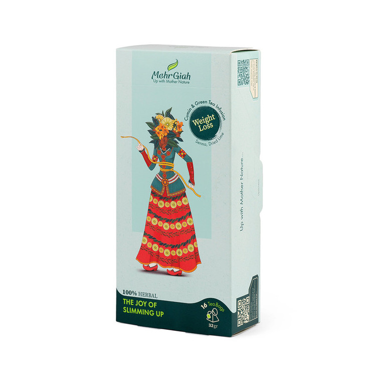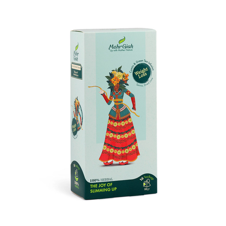 دمنوش کاهش وزن مخلوط زیره و چای سبز مهرگیاه بسته 16 عددی