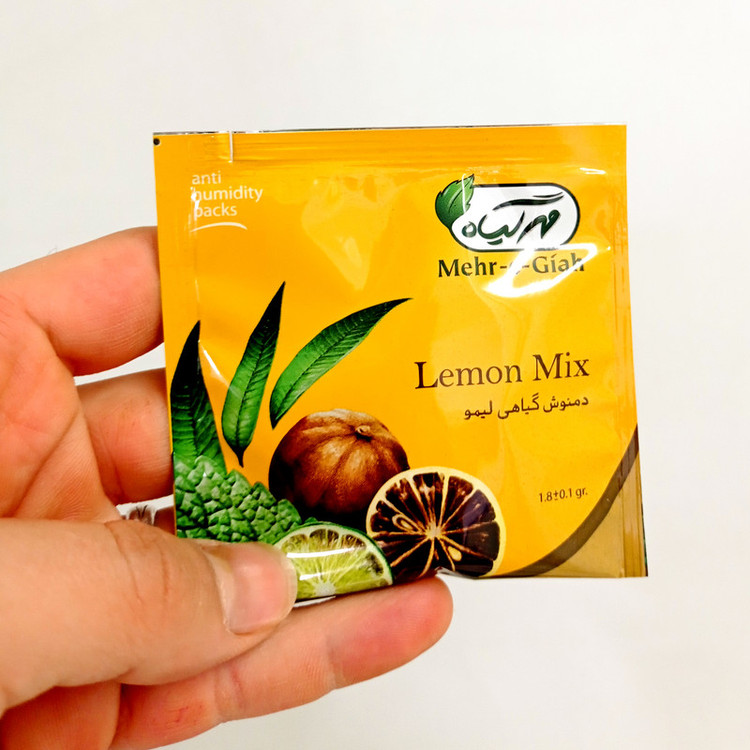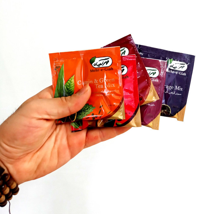 اجزای تشکیلدهنده- مخلوط سبز و سنا، زنجبیل، چای ترش، بهار نارنج، نعنا، اکیناسه، بابونه، چای سبز و سفید، گل گاو زبان، سنبلطیب، لیمو، قهوه سبز، ریشه کاسنی، آویشن